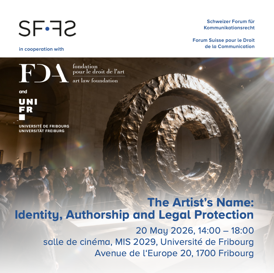 which will take place on Wednesday, 20 May, from 2:00 to 6:00 pm, at the University of Fribourg. The Art Law Foundation (ALF) is happy to be a partner of this event, organized by the Swiss Forum for Communication Law.